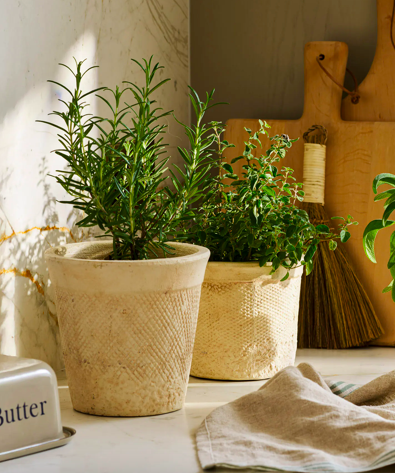 These chunky pots are suitable for 12cm diameter plastic pot or the smaller size will fit approximately a 7cm pot or smaller if propped underneath.