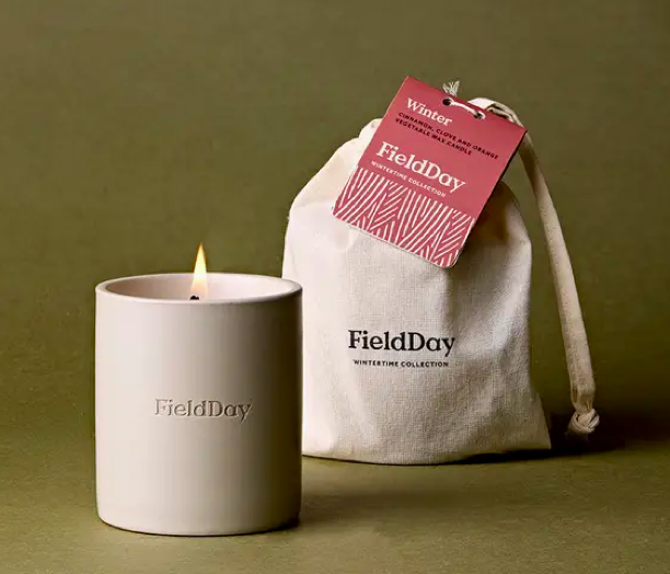 Cinnamon, Clove and Orange Vegetable Wax Candle in a Stoneware Pot made by FieldDay.