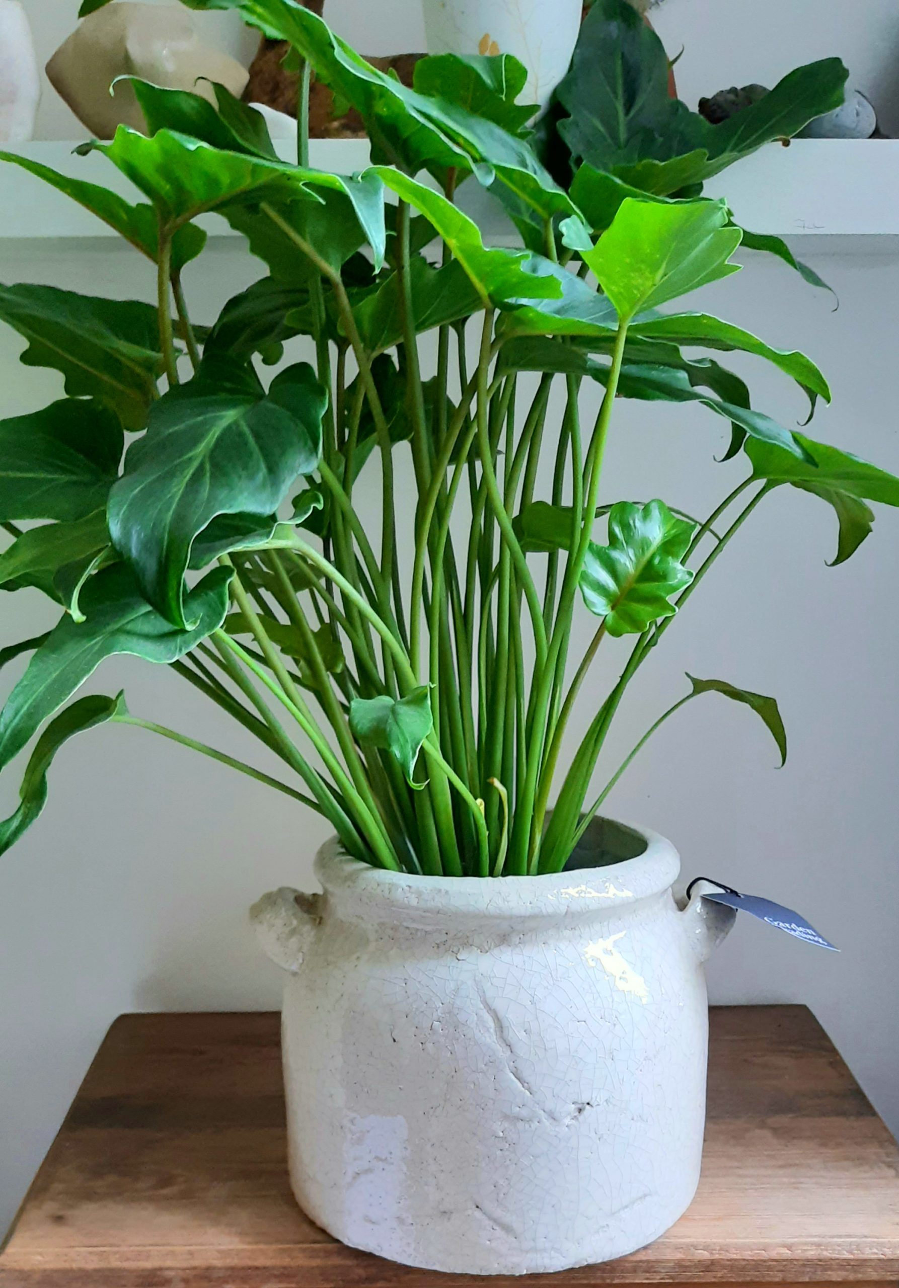 These chunky pots have a lovely crackled glaze and are 14cm inner diameter at the opening.